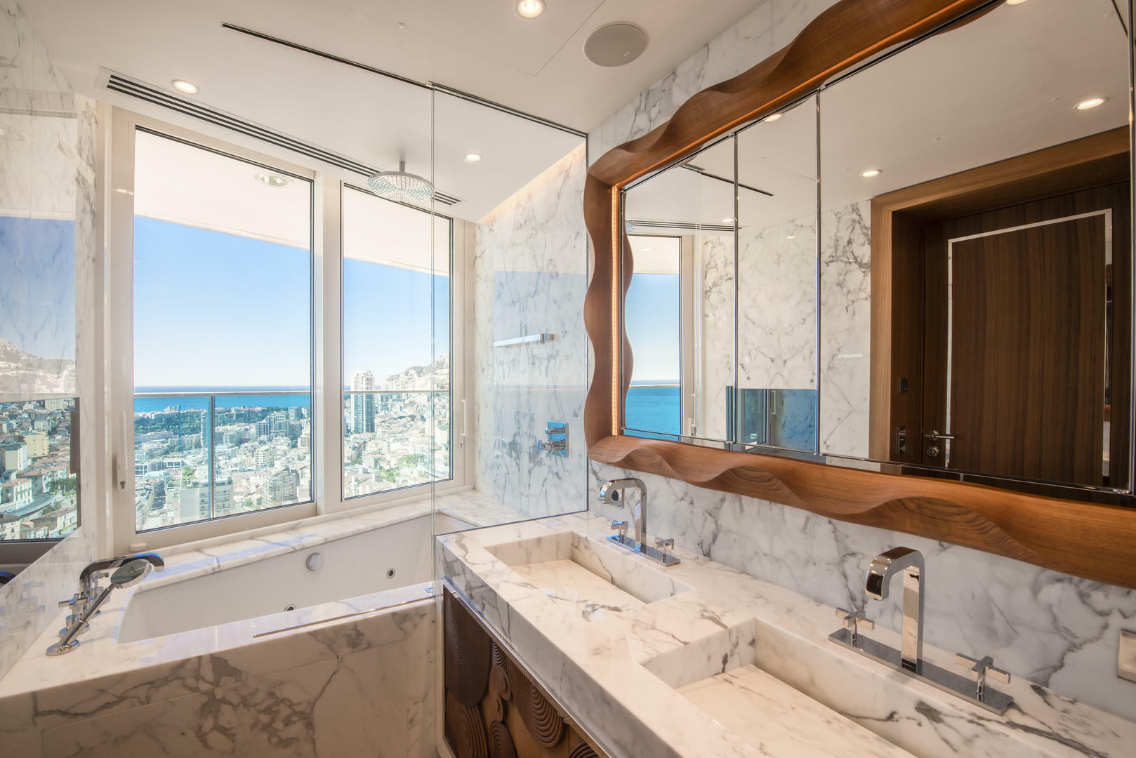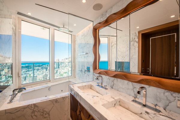 Cet appartement luxueux situé dans la tour Odéon récemment construite, surplombe la Principauté et offre une vue spectaculaire sur la mer. Situé au coeur de la ville, la résidence est proche de toutes les commodités, notamment du fameux boulevard des Moulins avec ses nombreuses boutiques haut de gamme, ainsi que de la plage du Larvotto.