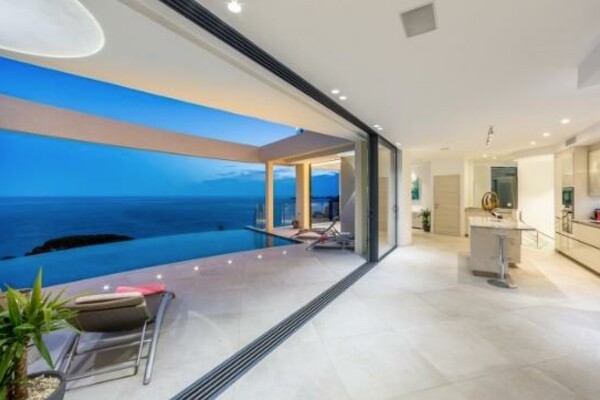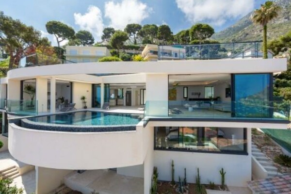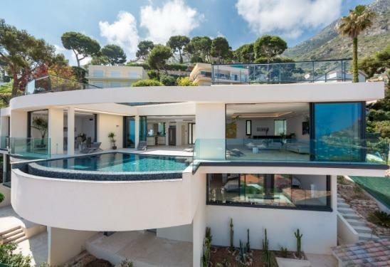 Propriété de type californienne nouvellement construite surplombant le Cap Martin offrant 4000 pieds carrés (360m²) d'espace de vie haut de gamme.